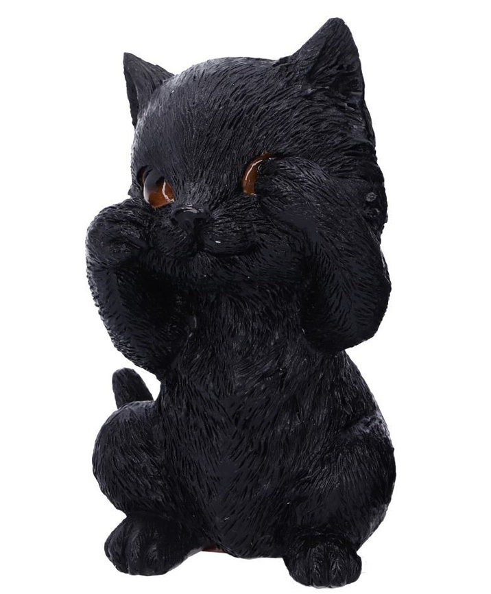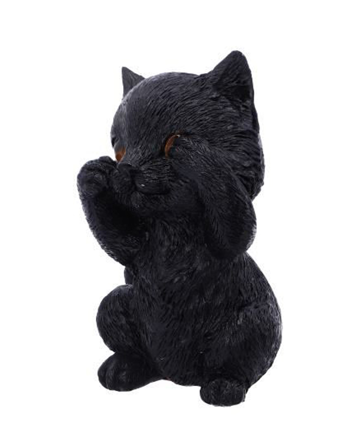 O pisicuță adorabilă, care ilustrează conceptul "Nu văd, nu aud, nu vorbesc". Figurina este fabricată din rășină de înaltă calitate și este pictată manual.