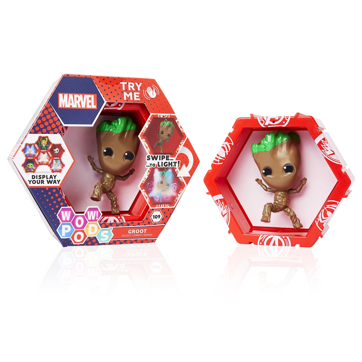 Fiecare personaj este situat in propriul POD in forma de hexagon cu lumini UV si senzor IR incorporat. Pur si simplu miscati mana peste senzor pentru a lumina WOW-ul! POD-ul! Misca-ti mana in fata POD-ului pentru a-l lumina si a dezvalui pictograme ascunse in spatele WOW!Pod-ului! Lumina se stinge automat dupa 30 de secunde. Conectati-le in cateva secunde! Colectia ta poate lua diferite forme si avea in fiecare zi, alt look! Limita e doar de imaginatia ta! Puteti chiar sa va scrieti numele sau initialele pentru a crea un afisaj care este fara indoiala si unic al dvs.! Colectionati si conectati personajele favorite printr-o colectie mai vasta de eroi WOW! PODS! Sunt disponibile personaje : Marvel, DC, Disney, Disney Frozen, Sonic, Jurassic World, Harry Potter, Minionii si altele. Acest pachet contine personajul Groot.
