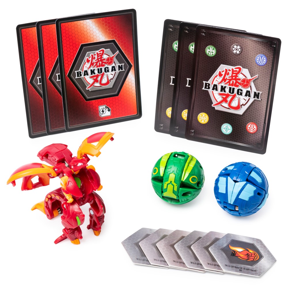 Acest pachet este tot ce ai nevoie ca sa joci Jocul de lupta al Bakuganilor. Acest set Bakugan triplu include personaje mai rare si speciale. Fiecare set include: trei bile Bakugan (2 de baza si 1 ultra), 6 Baku-placi puternice, 3 cartonase cu personaje si 3 cartonase de abilitati. Contruieste-ti cea mai mare si puternica echipa!