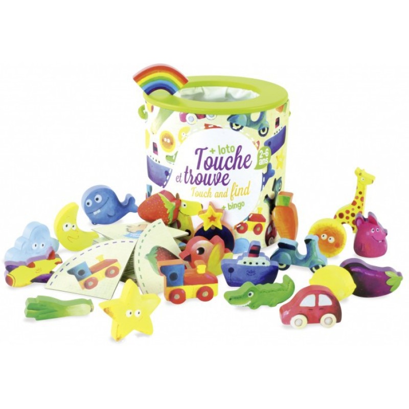Un joc educativ destinat celor mici, ce presupune identificarea tuturor figurinelor din lemn. Recunoaștere tactilă nu a fost niciodată mai distractivă. Cutia cobține 21 de piese din lemn.