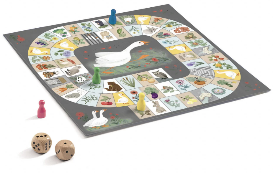 Un joc clasic pentru întreaga familie, dar re-editat de Djeco. Spirala cu cele 63 de căsuțe se parcurge ca un traseu cu surprize, unele care te țin pe loc, unele te întorc din drum, sau unele frumoase care îți dau avans față de partenerii de joacă.