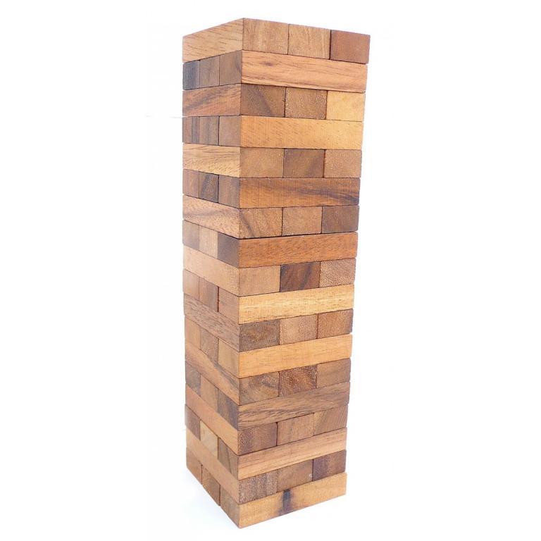 Construieste turnul si apoi, pe rand, incercati sa scoate piese cat mai de jos fara sa il daramati.