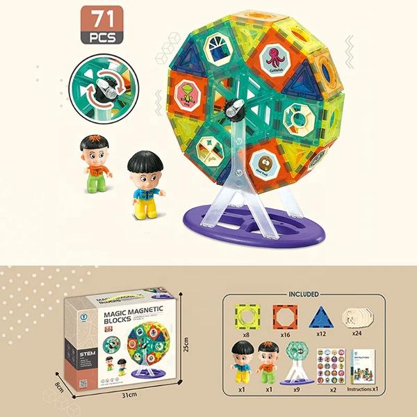 Joc Construcție Magnetic - Magic Set Roata 71 Piese este o jucărie educativă ce conține: