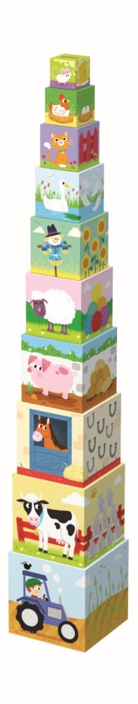 Cuburile pentru stivuit sunt un set de 10 cuburi de dimensiuni diferite care pot fi folosite pentru a construi un turn sau orice alta structura pe care o alegeti. Imagini frumoase si unice ajuta copiii sa invete numerele de la 1 la 10, sa cunoasca despre viata in ferma sau sa intalniti locuitorii padurii si descoperiti delicatesele lor preferate. Explorati locurile in care traiesc si urmariti-le pe caile ferate. Fiecare set include: - 10 cuburi de stivuire colorate - brosura cu idei pentru joc