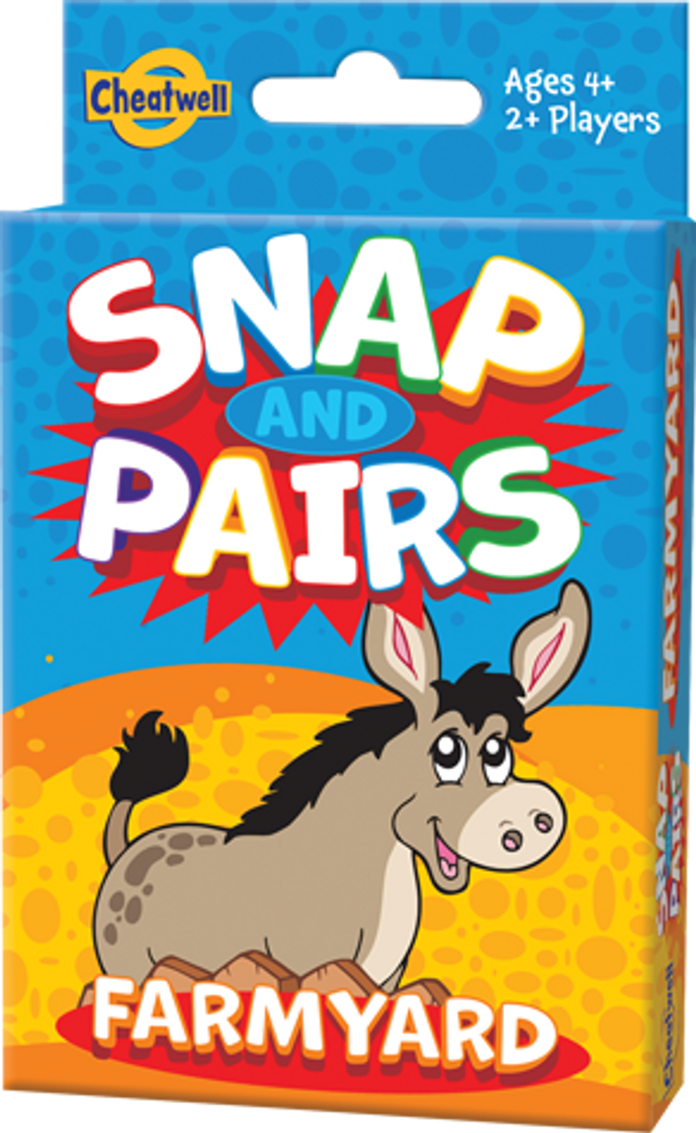 Acest set de cărți dublu combină jocul clasic Snap cu un joc de memorie Pairs. Simplu de jucat, trebuie doar să identifici Snaps-urile sau să potrivești Pairs-urile pentru a câștiga! Ideal pentru joaca de zi cu zi sau pentru a fi luat în vacanță, acest pachet de buzunar este o modalitate captivantă și plină de distracție pentru copii de a-și îmbunătăți memoria și abilitățile de observare.