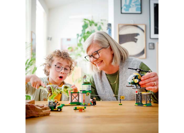 Bucura-te de ore intregi de actiune palpitanta cu dinozauri, cu acest set de joc inspirat din filmul Jurassic World Dominion. Construieste aeroportul cu un heliport, un elicopter si un gard prin care patrunde puternicul T. rex. Setul include, de asemenea, minifigurinele Owen Grady, Zia Rodriguez si un paznic al faunei salbatice, plus un ou de dinozaur, un walkie-talkie si un pistol tranchilizant, pentru a juca propriile tale povesti palpitante.