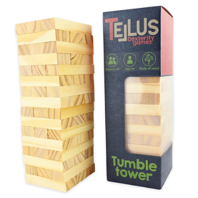 Acest turn clasic care se rostogolește oferă emoție, râsete și mâini tremurânde! Construiește un turn din blocuri de lemn și îndepărtează cu grijă câte un bloc pe rând - fără a prăbuși întregul turn. Un joc distractiv și stresant care provoacă precizia, strategia și o mână stabilă. Perfect pentru serile de jocuri cu familia și prietenii!