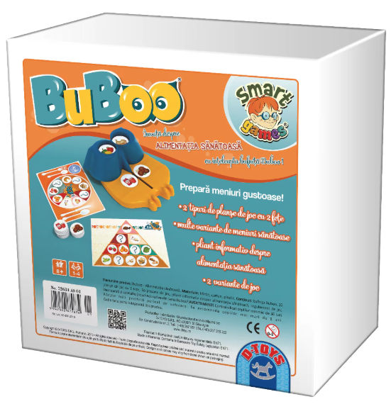 Inteleapta bufnita Buboo imbogateste cunostintele celor mici prin exercitii de asociere distractive. Cu ajutorul jocului Buboo - Alimentatia sanatoasa, vei invata sa identifici alimentele de pe jetoanele de joc si sa le asociezi cu categoriile nutritionale de pe planse.