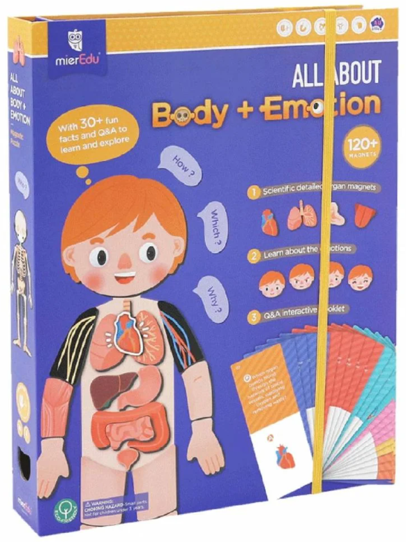 Intreaba-te: Cum functioneaza creierul meu? Cum imi permit urechile sa aud sunetele? Ce se intampla cu mancarea dupa ce o consum? Puzzle-ul magnetic ajuta copiii sa invete despre corpul uman de la cap la picioare.