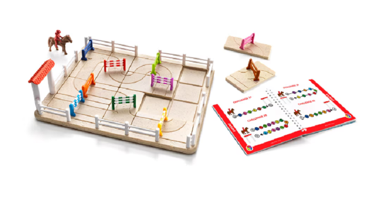Contine: 1 tabla de joc, 1 piesa calaret cu cal, 9 piese traseu cu obstacol, 1 poarta de finish si 1 brosura cu 80 de provocari si solutii.