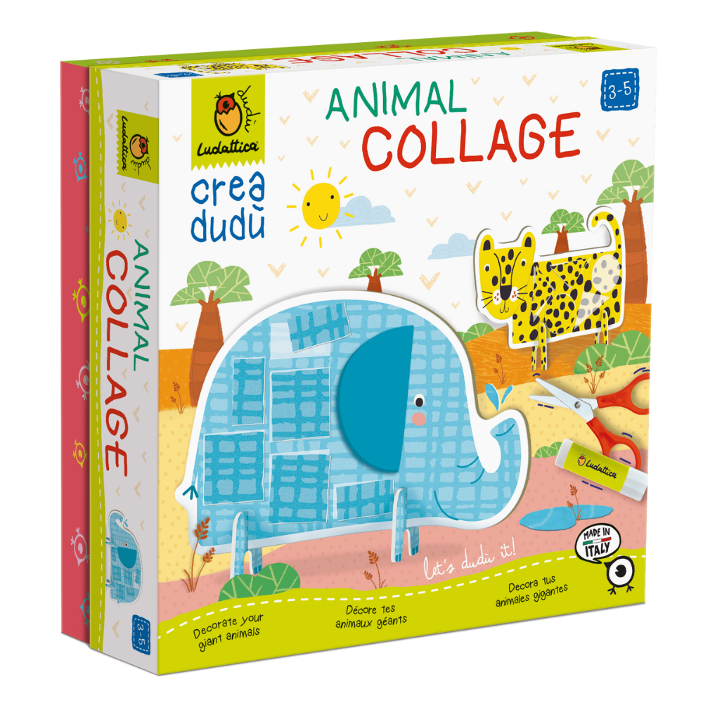 Acest kit creativ este special conceput pentru a introduce copiii mici în lumea artei colajului într-un mod distractiv și educativ. Pachetul conține 8 forme mari de animale de decorat, foi cu modele de decupat și lipit, o foarfecă și lipici – tot ce au nevoie cei mici pentru a-și da frâu liber imaginației. Prin activitate practică, copiii decorează animalele și le pot folosi ulterior în joacă, așezându-le pe suporturile speciale incluse în set.