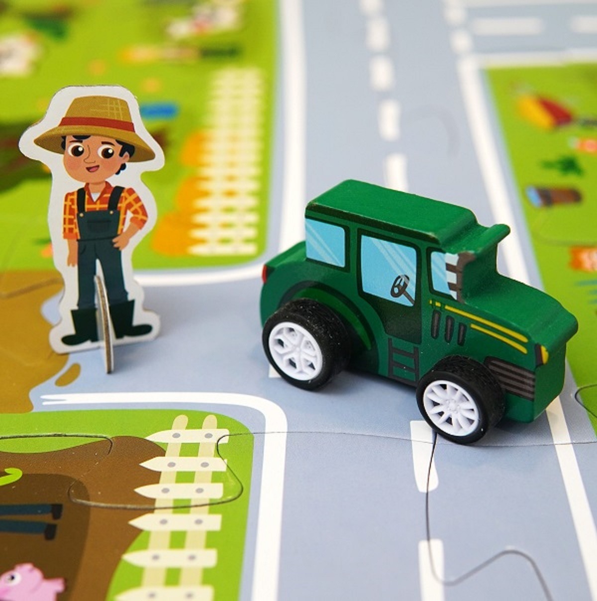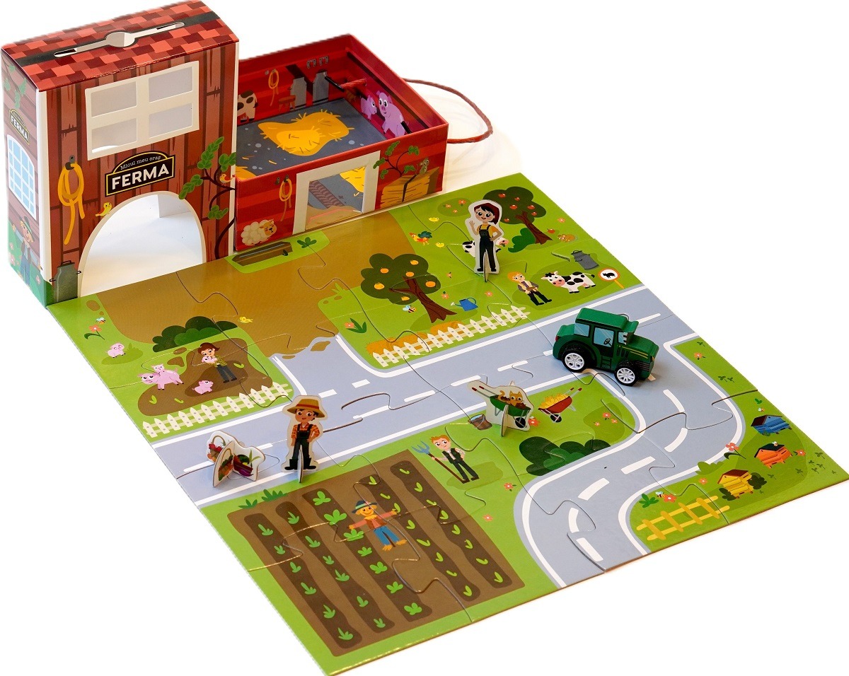 - Un puzzle format din 16 piese cartonate cu ajutorul carora poti recrea imprejurimile fermei.