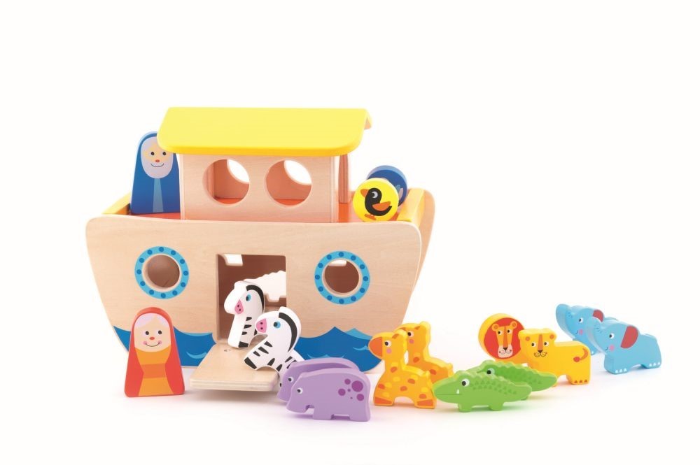 Arca lui Noe din lemn natural de culoare deschisa este o jucarie perfecta de dezvoltare timpurie, ce incurajeaza copiii sa se joace cu ceilalti. Jucaria stimuleaza creativitatea si este perfecta pentru invatarea culorilor, formelor si animalelor.