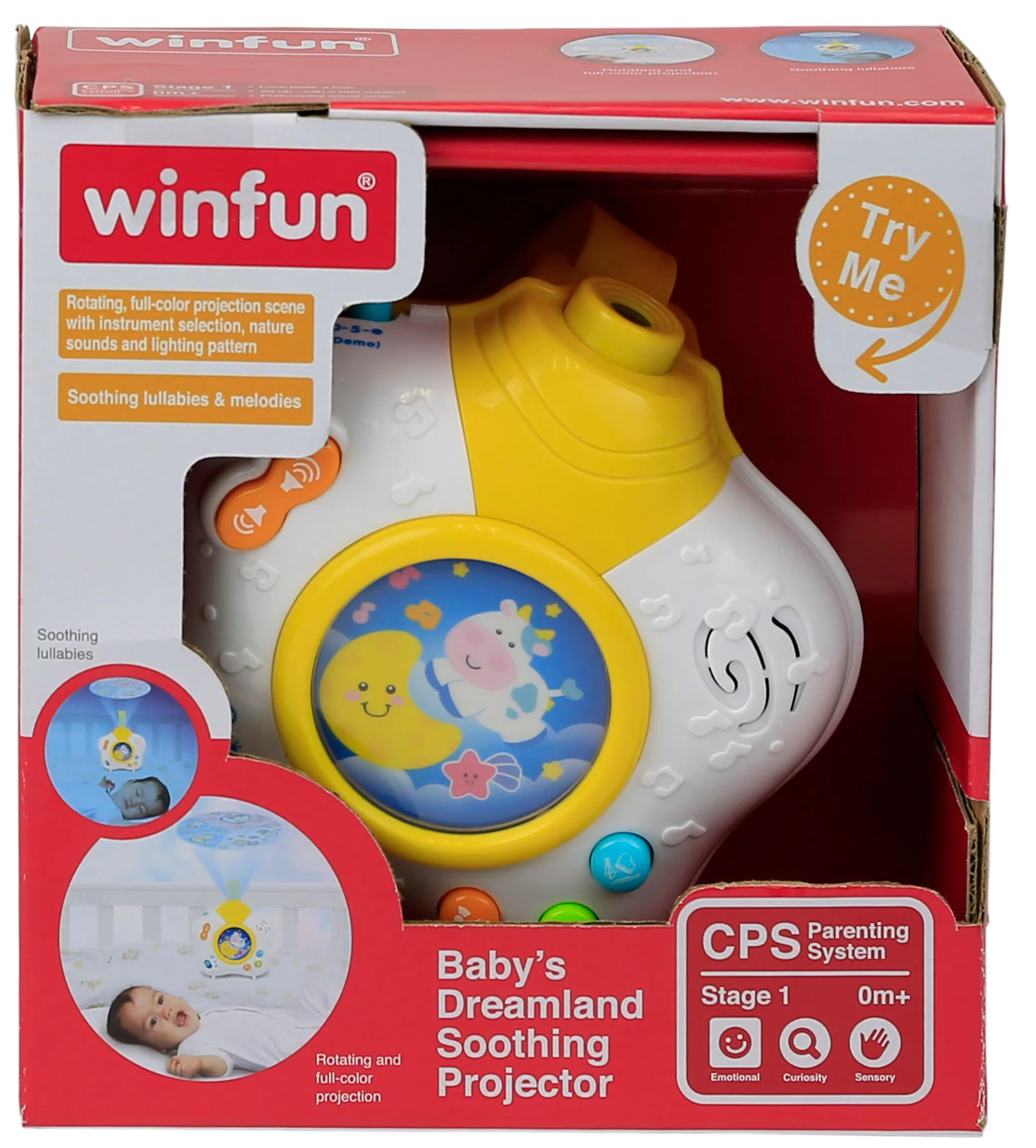 Scena de proiectie rotativa, colorata cu 3 selectii de moduri includ: - Selectarea instrumentelor - Sunetele naturii - Model de iluminat.