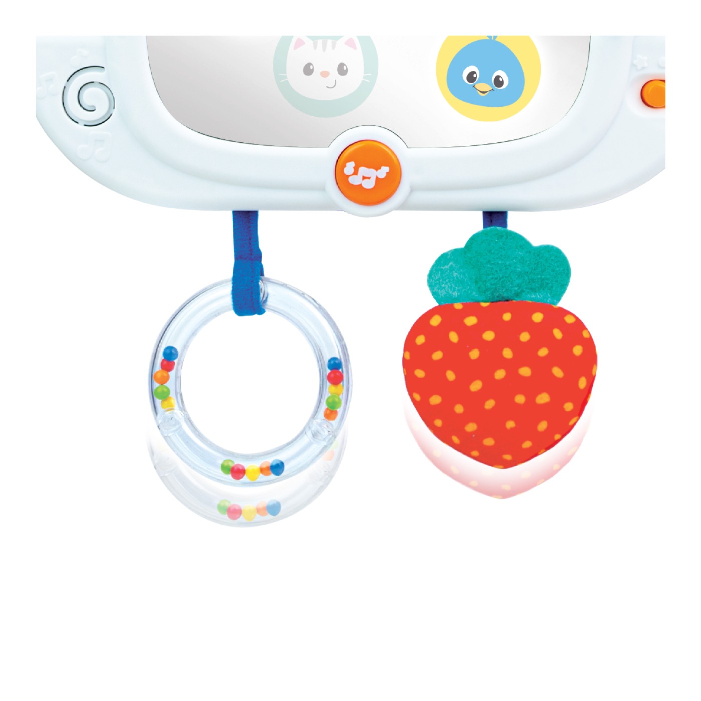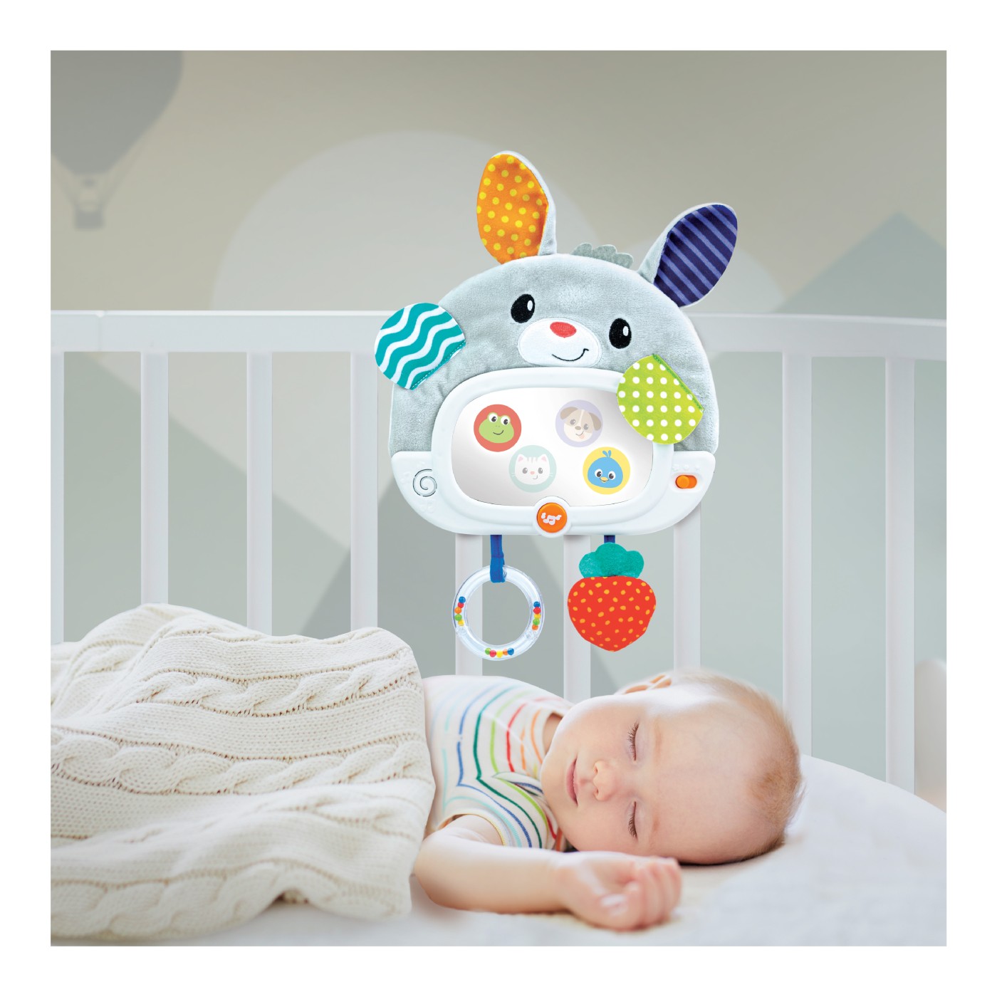 Jucaria Winfun Iepuras cu Activitati este perfecta pentru a insoti micutul in momentele de joaca si relaxare. Acest iepuras adorabil include o oglinda, sigura pentru copii, cu patru animalute si efecte luminoase care il vor fascina pe cel mic. Cu doua moduri de joaca, zi si noapte, jucaria ofera melodii vesele si sunete amuzante pe timpul de zi si melodii linistitoare si sunete din natura pentru un somn calm. Copilul poate trage de inelul de zornait sau de butonul pentru melodii pentru a activa sunetele si efectele luminoase. Datorita posibilitatii de a-l atasa la patut sau la carucior, acest iepuras devine un companion ideal atat pentru joaca, cat si pentru momentele de relaxare.
