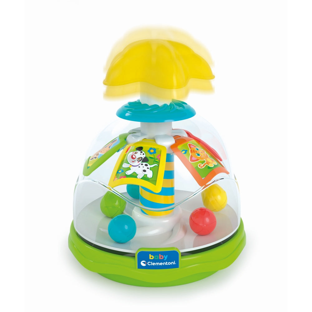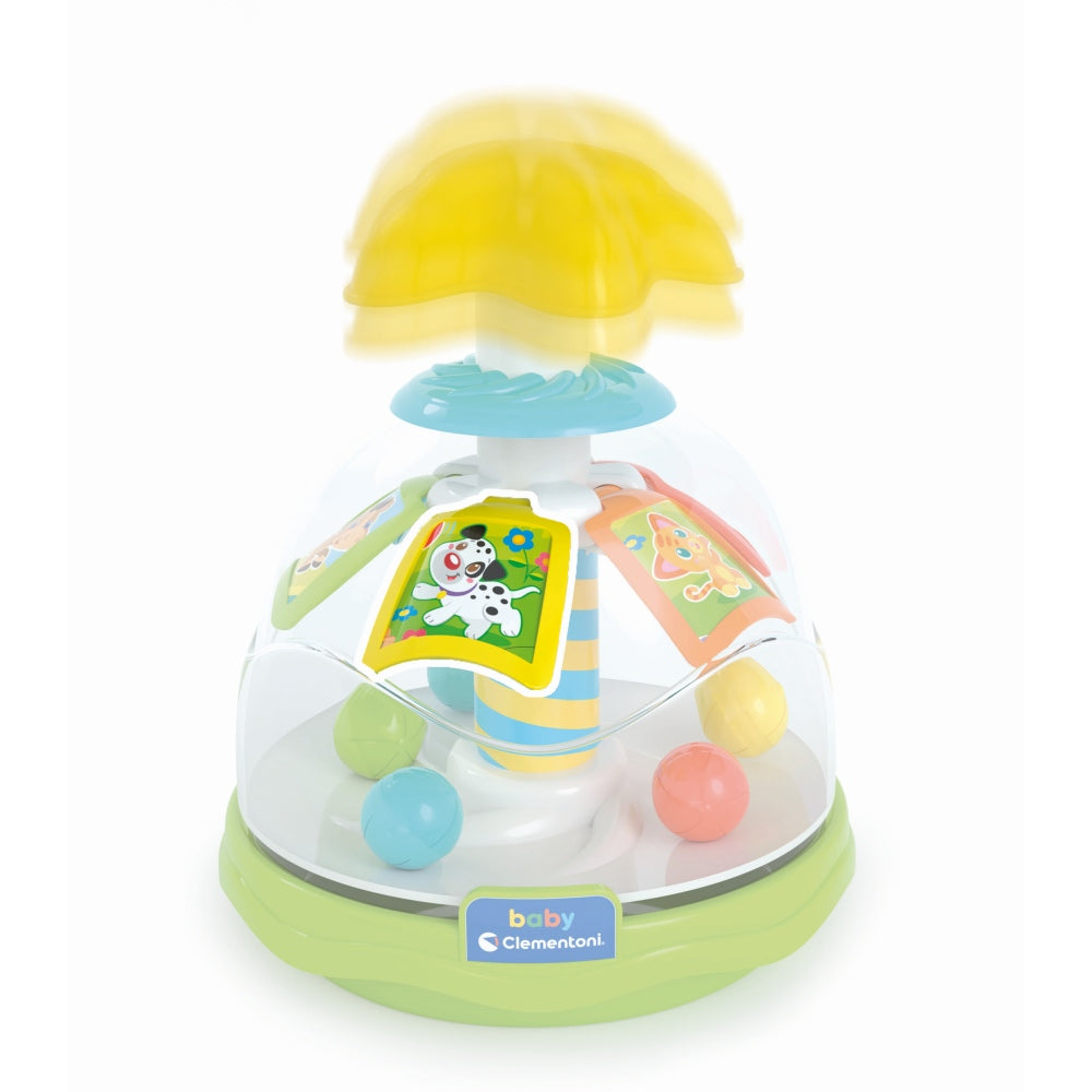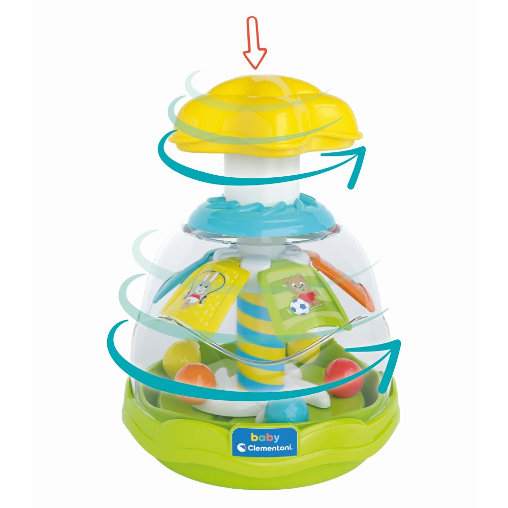 Copilul apasă pe steaua centrală pentru a declanșa mecanismul de rotație.