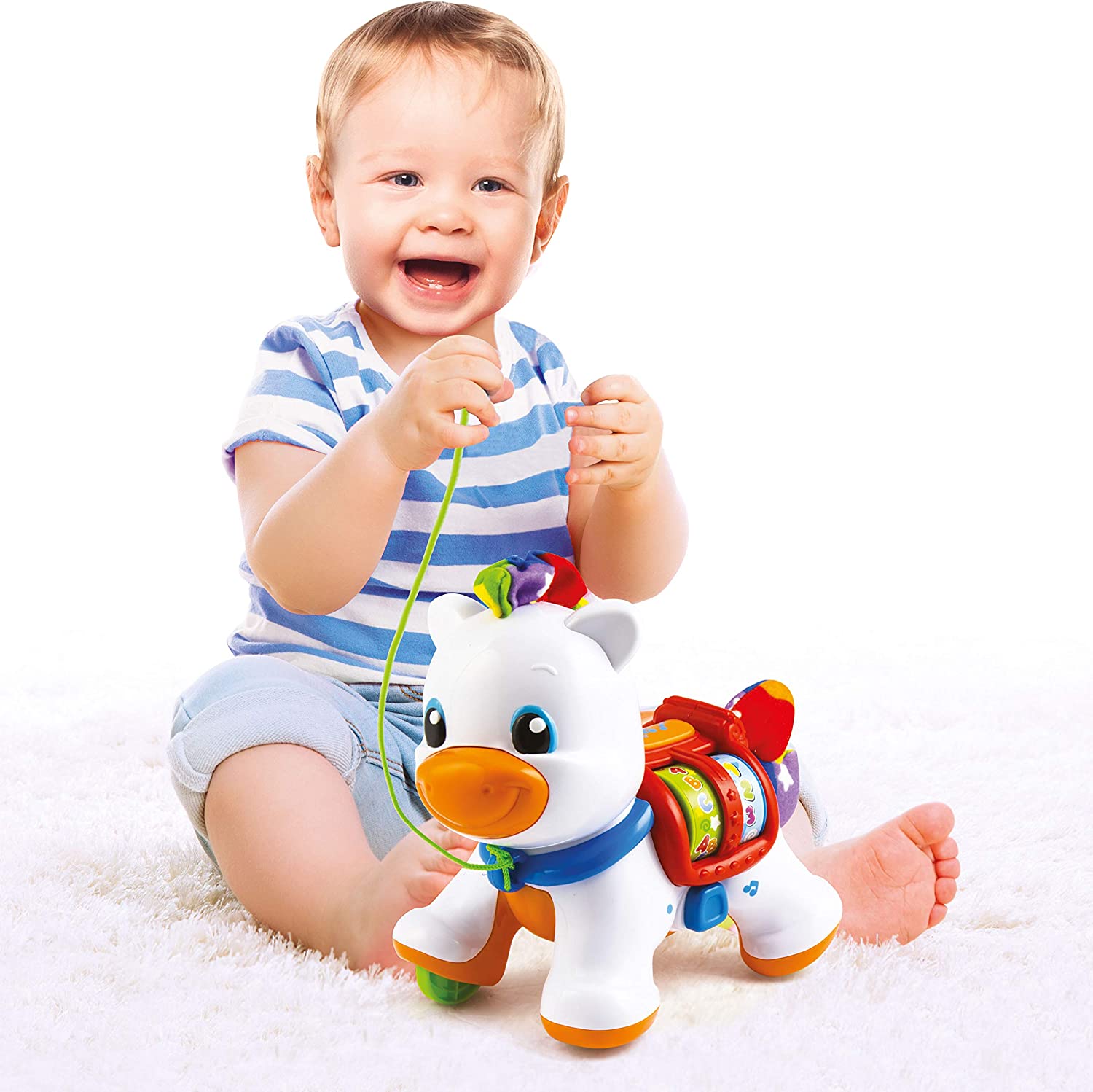 Poneiul interactiv de la Baby Clementoni asigura ore intregi de distractie, fiind jucaria de tras preferata de cei mici!