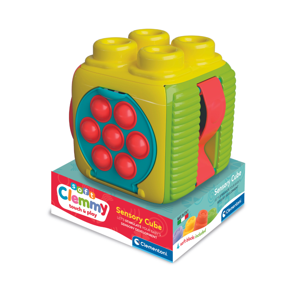 Clemmy Cube stimuleaza dezvoltarea senzoriala si coordonarea motorie.