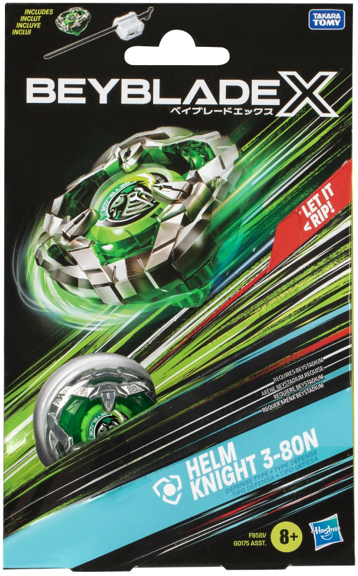 Bladers isi lanseaza varfurile in ciocniri aprige impotriva punctelor de marcare ale adversarului lor la fiecare confruntare – primul care obtine 4 puncte castiga. Jucariile Hasbro Beyblade cu blaturi din metal turnate Takara Tomy autentice sunt cadouri grozave pentru copii pentru baieti si fete cu varsta de 8 ani in sus. Acest pachet contine figurina Helm Knight 3-80N Defense Type.