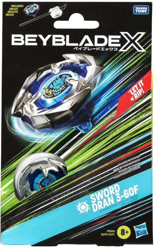 Atunci cand echipamentul unui blat Beyblade X cupleaza sina arenei Beystadium, acesta poate accelera super intr-un Xtreme Dash care il arunca in jurul stadionului pentru ciocniri zdrobitoare si explozii epice. Bladers isi lanseaza varfurile in ciocniri aprige impotriva punctelor de marcare ale adversarului lor la fiecare confruntare – primul care obtine 4 puncte castiga. Jucariile Hasbro Beyblade cu blaturi din metal turnate Takara Tomy autentice sunt cadouri grozave pentru copii pentru baieti si fete cu varsta de 8 ani in sus. Acest pachet contine figurina Sword Dran 3-60F.