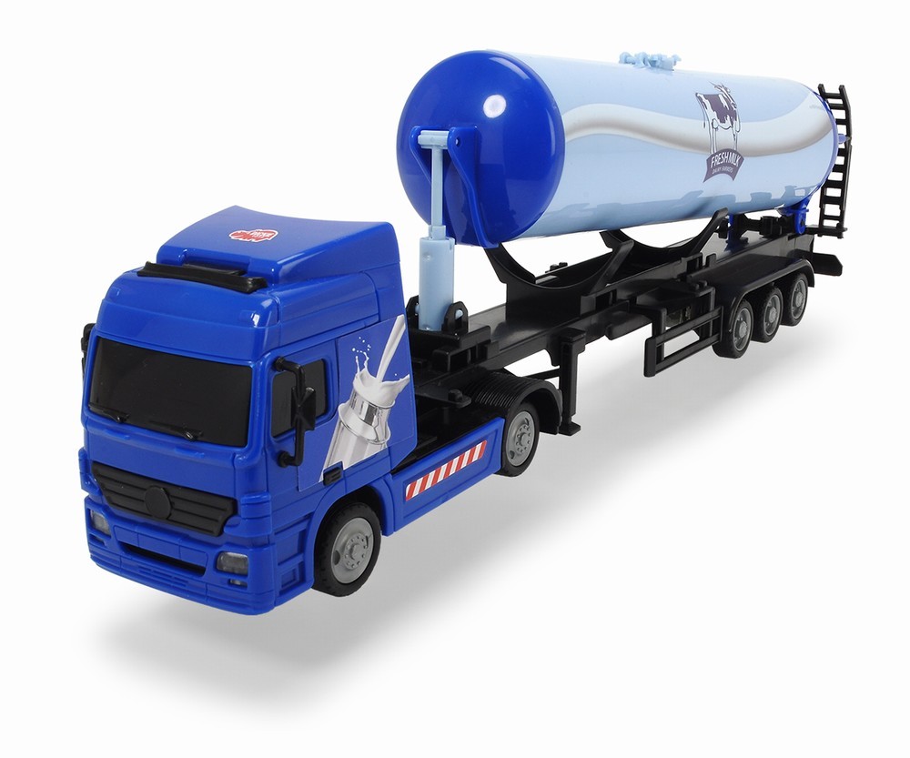Cu aceste vehicule de transport Dickie, copiii pot transporta propriile produse dintr-un loc in altul. Remorca este detasabila. Scara 1:43.