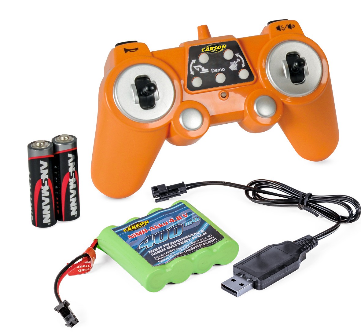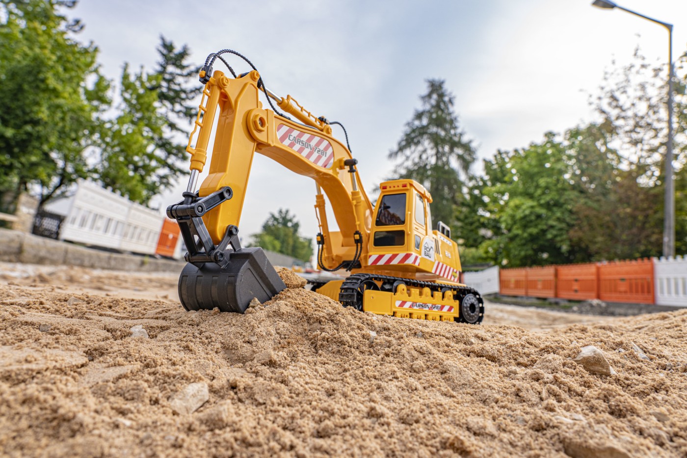 Linia de construcție CARSON RC la scară 1:20 include multe modele detaliate cu cea mai recentă tehnologie, cum ar fi un sistem RC multicanal de 2,4 GHz fără interferențe, sunet și lumină, sunete de motor și, în funcție de model, un Funcția de pulverizare cu apă controlabilă prin transmițător. Fiecare model are un mod demonstrativ și afișează toate funcțiile la atingerea unui buton de pe transmițător și, în funcție de model, este montat cu arc și are 2 osii spate antrenate. Întreaga serie este complet echipată cu un transmițător și bateriile sale, baterie de conducere reîncărcabilă, încărcător și instrucțiuni și, odată încărcată, este imediat gata de funcționare. Cumpărați, încărcați – conduceți!
