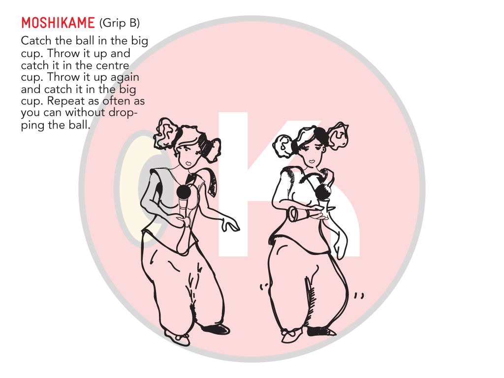 Conceptul este completat de base cup hole, care reduce greutatea bazei si muta centrul de greutate spre mijloc, rezultand un lunar balance exceptional. Kendama permite atat trick-uri de tip cup si stall, cat si string combos fluide si juggling avansat.