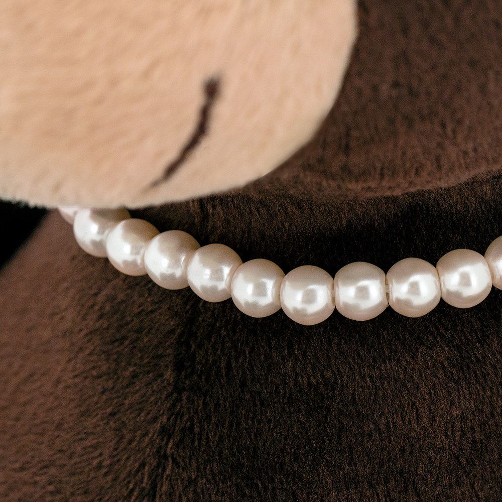 Milk este cel mai frumos ursuleț din lume. Ea are are o fundă de satin roz pe cap și un colier de perle.