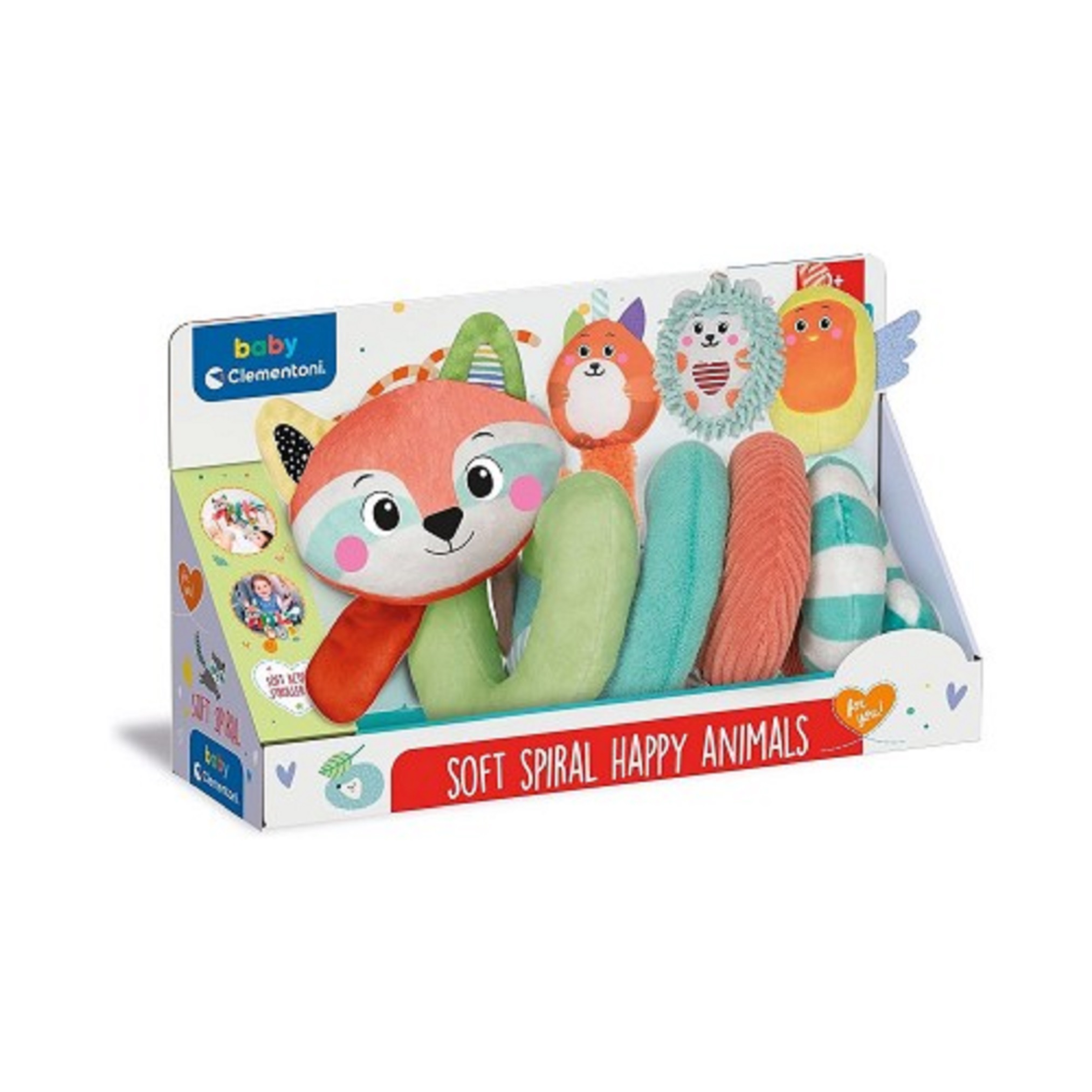 Ratonul amuzant si prietenii sai gingasi din padure formeaza o spirala moale pentru carucioare, pentru a distra si amuza copilul datorita diferitelor materiale si jucariilor cu bile suspendate. Veverita dulce are o coada moale cu efect de fosnet, ariciul are o jucarie cu zornait in burtica sa si pasarea mica are un clopotel in interiorul sau. Stimuleaza abilitatile manuale, perceptia vizuala si auditiva. O spirala care se infasoara pe carucior sau pe patul de copii, pe care o puteti purta mereu cu voi! O jucarie potrivita pentru primele luni de dezvoltare ale copilului. O lume care trebuie descoperita Timpul petrecut la joaca este esential pentru dezvoltarea celui mic. Fiecare moment plin de distractie reprezinta pentru copilul tau noi invatari, descoperiri si abilitati. Jucariile baby Clementoni ii vor ajuta pe copii sa invete in timp ce se distreaza, favorizand cresterea lor prin folosirea unui limbaj natural pe care il cunosc: jocul. Zornaitoare, jucarii interactive si multe altele va asteapta sa le descoperiti! Caracteristicile produsului precum calitatea, siguranta sau manipularea usoara sunt concepute pentru a depasi asteptarile parintilor. Asadar, baby Clementoni se afla in pozitia de invidiat de a fi un brand dedicat celor mici, capabil sa satisfaca ambele parti ale nevoilor consumatorilor: emotional si functional. Principalele avantaje ale jucariilor baby Clementoni Potrivite pentru fiecare etapa de crestere a bebelusilor; Sigure pentru copii, folosind materiale de inalta calitate si non-toxice; Jucarii de calitate cu un puternic continut educational; Stimuleaza functiile locomotorii ale bebelusilor si-i ajuta sa descopere relatia dintre cauza-efect; Jucarii interactive ce vorbesc, canta si se misca, starnind curiozitatea micutilor; Desenat, testat si proiectat in Italia Jucarie sigura si certificata