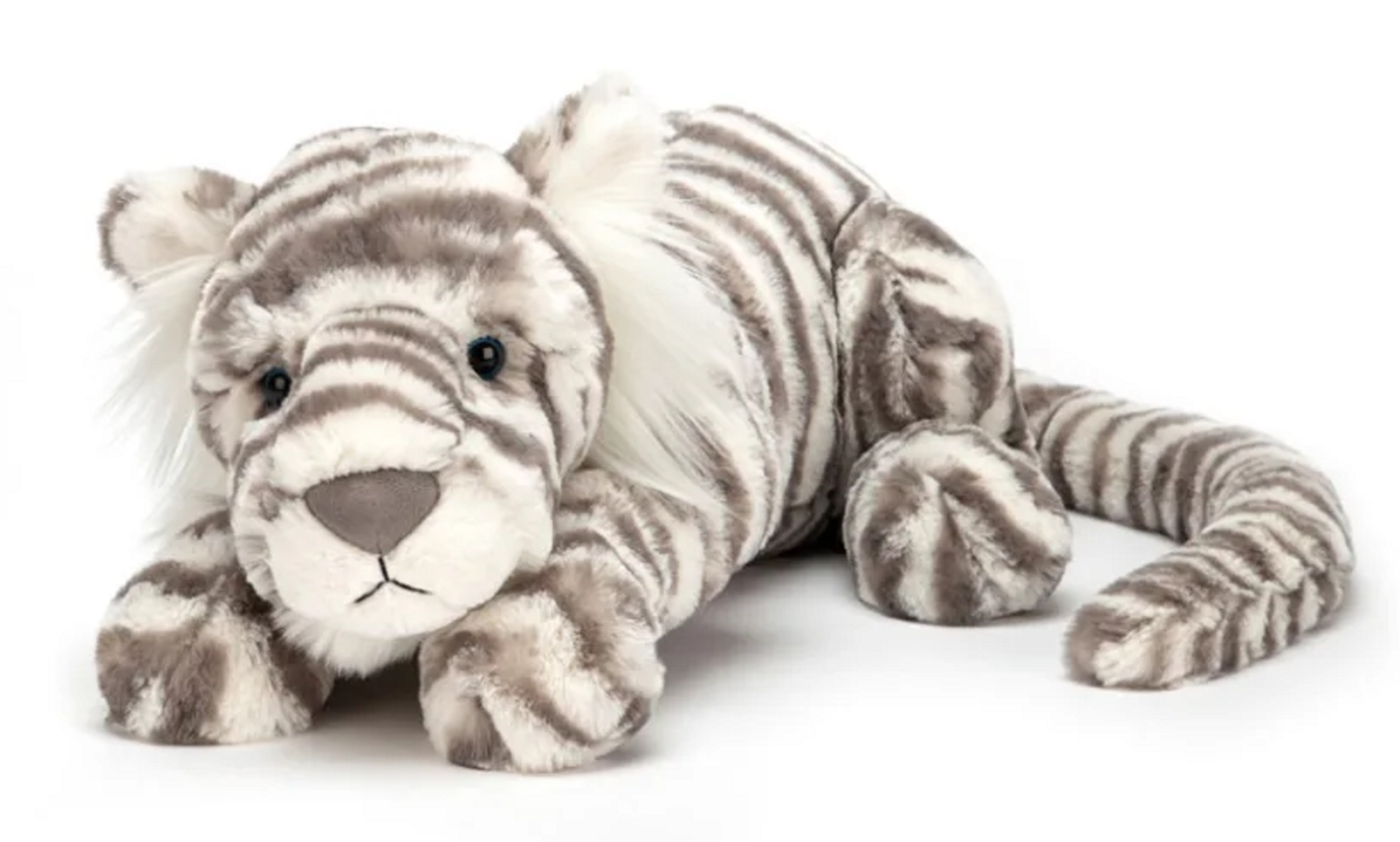 Un tigru de zăpadă absolut fantastic de moale și delicios de la Jellycat, cu blană albă și dungi gri. Corpul în sine este încântător neglijent și prietenos cu îmbrățișările. Deloc pentru a reprezenta - nici pentru băieți, nici pentru fete.