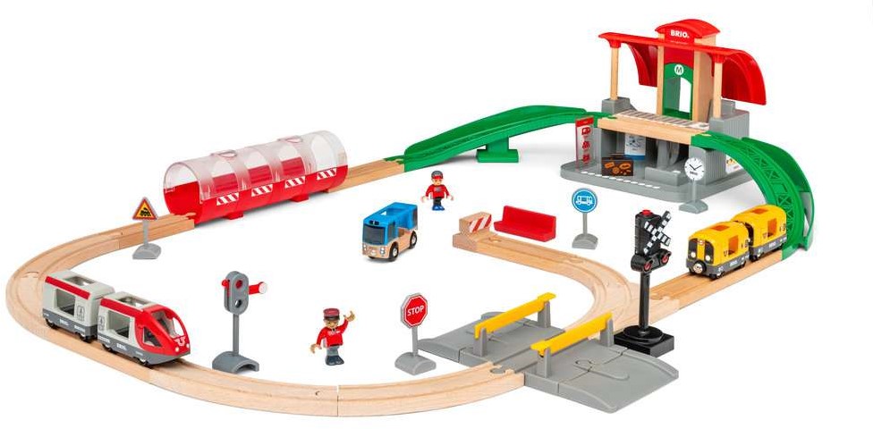 Cele 37 piese ale Jucarie educativa - Gara Centrala se îmbină perfect, simulând o gară!