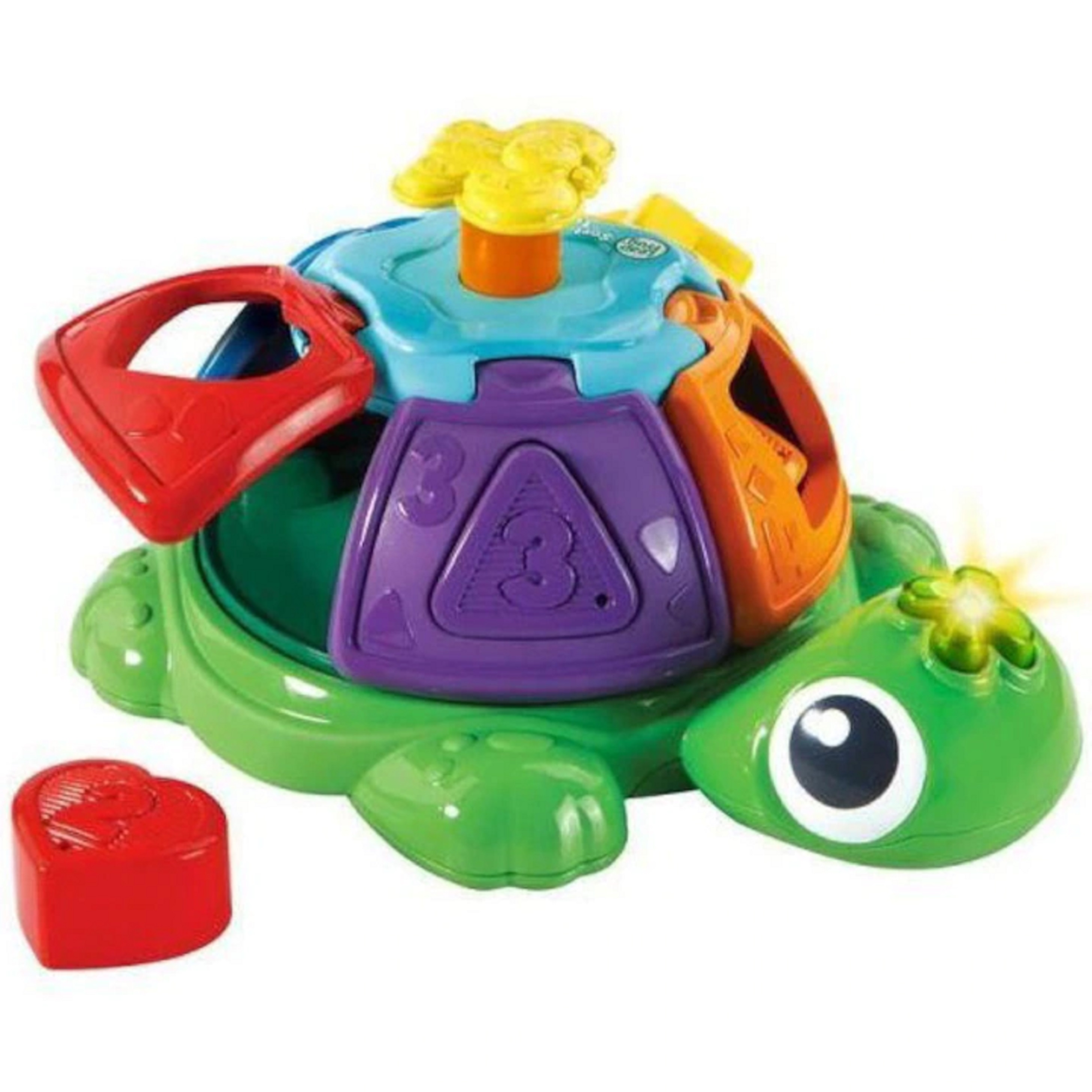 Continue o jucarie VTech Testoasa cu Forme, 5 bolovani din plastic si un manual de instructiuni.