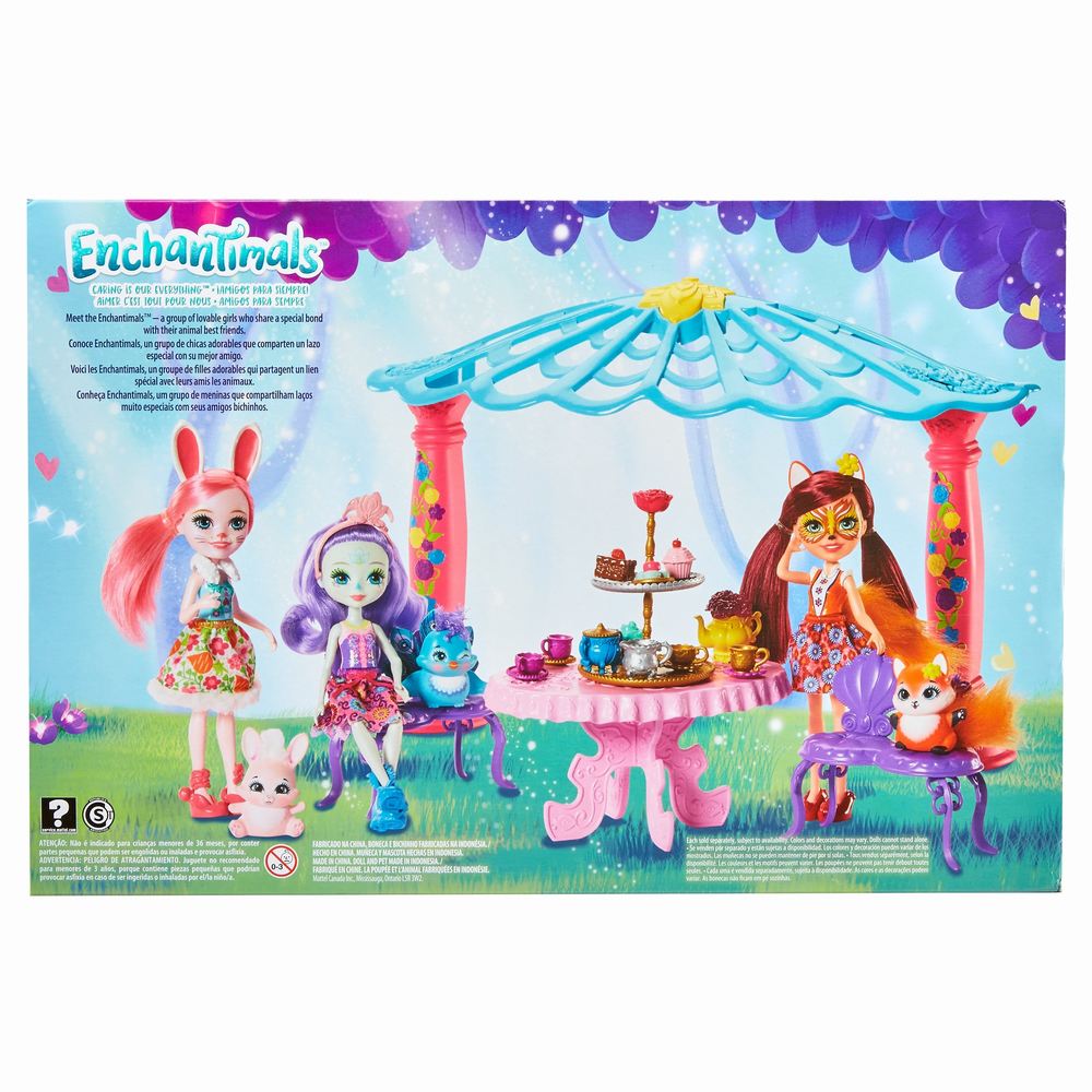 Papusa Patter Peacock ™ si cel mai bun prieten Flap ™ paunul, dau o petrecere cu ceai, dulciuri in foisorul plin de culoare si fantezie! Joaca-te si distreaza-te cu acest set de povesti care include papusa Enchantimals ™ si prietenul ei animal, un foisor, banci, o masa si accesorii fermecatoare pentru ceai. Strangeti toate personajele pentru a construi o lume a Enchantimals ™ si a spune povestiri incantatoare!