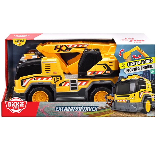 Camion cu excavator (30 cm) cu rotire brat de 360 de grade pentru camera copiilor si groapa de nisip - cu lumini si sunete.