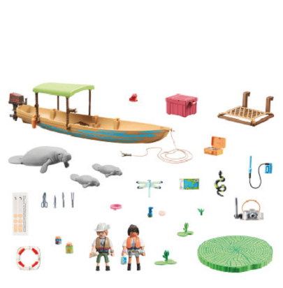 Setul include: 2 figurine, o barca, un lamantin cu doi pui, o camera subacvatica, echipament de masurare, accesorii veterinare si multe alte accesorii pentru aventuri interesante pe Amazon.