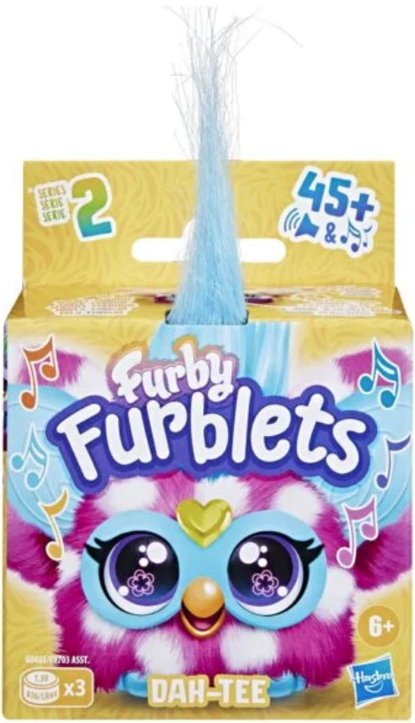 Peste 45 de efecte speciale in fiecare. Fiecare Furblet are propria voce si personalitate unica. Vorbeste limba Furbish si cantati impreuna. Jucariile Furblet interactioneaza, de asemenea, cu marele Furby (se vinde separat). Gama de 6 (fiecare se vinde separat). Furbys poate fi mic, dar cu siguranta are propria lui personalitate!