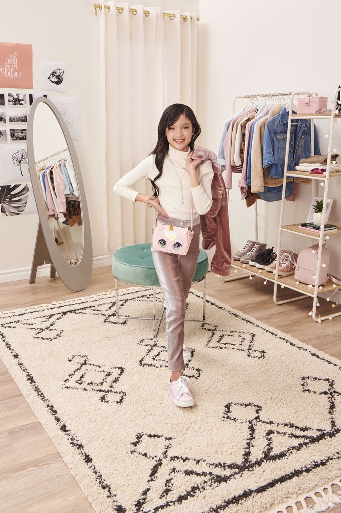 Da viata tinutei tale cu gentile Purse Pets! Aceste fabuloase animalute de companie interactive au o personalitate pe masura! Raspund la atingerea ta, clipesc si au peste 25 de sunete si reactii unice fiecarui stil! Geanta Glamicorn Purse Pet are un corn sclipitor, este realizata din piele lucioasa iridescenta, piele ecologica roz cu pietricele, ochi de inspiratie pop-art, curea reglabila si accesorii autentice din metal. Atunci cand esti pe drum, geanta Glamicorn Purse Pet va clipi si va scoate sunete indraznete atunci cand interactioneaza cu tine. Atinge-i fruntea pentru a o face sa gangureasca si sa toarca fericita! Fa un selfie, apoi mangai-o si tine mana pe fruntea ei iar ea va inchide si va deschide ochii si iti va sufla un pupic jucaus! Observa insemnele stilate din metal de pe partea frontala a gentii inorog – este un buton secret care iti ofera si mai multe moduri de joaca! În modul magic puteti juca jocuri si asculta muzica impreuna. Vrei sa stii daca gentii tale Glamicorn Purse Pet ii place cum te-ai imbracat azi? Lasa-ti geanta sa ghiceasca pentru tine in cartile modei si intreab-o ce crede. Atinge-i fruntea, pune intrebarea iar ea iti va oferi un raspuns „da” sau „nu” si va scoate sunete dragute. Pune-i si mai multe intrebari iar apoi poarta cu incredere tinuta aleasa! Apasa indelung pe fruntea Purse Pet pentru a intra in modul podium de moda. Glamicorn Purse Pet va incepe sa cante muzica inspirata din spectacolele de moda – atinge-i fruntea pentru efecte de sunete de tipul aparat de fotografiat si tine apasat pentru sunetul de aplauze. Este atat de distractiv! Purse Pets imbina moda si prietenia! Ia-ti geanta super simpatica oriunde ai merge. Avand dimensiunile aproximative de 10.7 cm inaltime, 15.8 latime si 6.3 cm adancime, geanta este perfecta pentru toate lucrurile tale esentiale. Purse Pets sunt cadoul perfect pentru fete si includ 3 baterii AAA Duracell. Ia acasa Glamicorn Purse Pet si afiseaza tinute infiorator de cool alaturi de animalutul tau de companie interactiv!