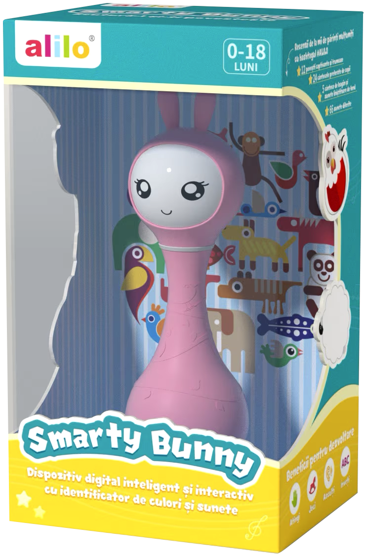 Alilo Smarty Bunny imbunatateste invatarea prin predarea recunoasterii culorilor cu ajutorul urechilor care lumineaza si a cardurilor de culoare incluse. In plus, urechile sale din silicon moale si masticabil, iluminate cu lumini colorate, ofera o experienta sigura si placuta pentru bebelusii care sunt in perioada de dentitie. Proiectat pentru siguranta, jucaria este durabila datorita materialului din plastic ABS, are un design prietenos pentru copii si vine cu o baterie reincarcabila incorporata, fiind un cadou esential, versatil si incantator pentru copiii mici.