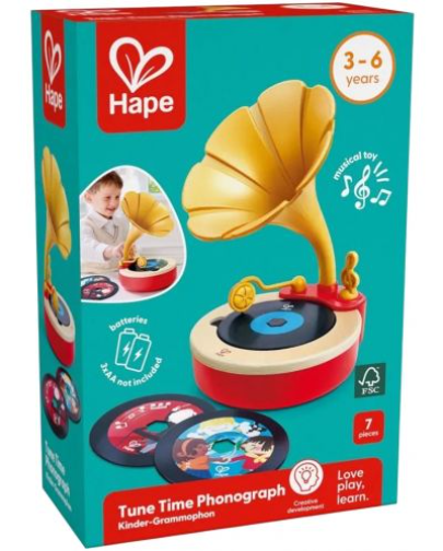 Cu 2 discuri muzicale cu genuri muzicale distincte de jucat, acest fonograf serveste ca instrument educational care ii expune pe copii la o bogata tapiserie de melodii, stimuland o apreciere profunda pentru muzica. Acest fonograf include un disc gol pentru inregistrare, care le permite copiilor sa-si dezlantuie creativitatea pentru a-si crea propriile cantece si inregistrari.