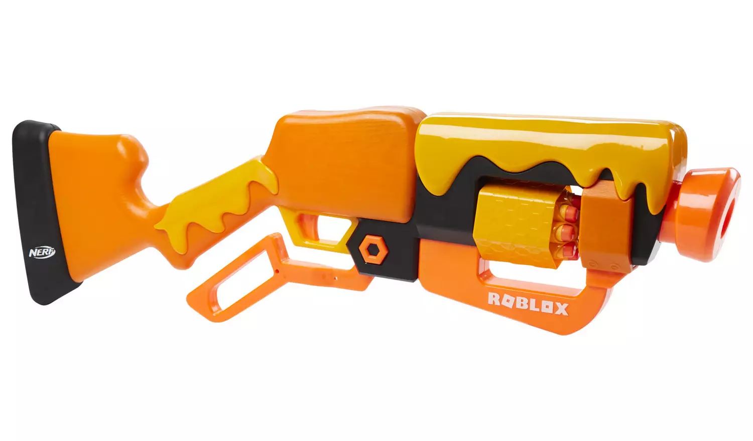 Cele mai cunoscute jucării de la Nerf sunt blasterele. Acest pistol, trage cu proiectile realizate din material spongios, pe distanţe mari.