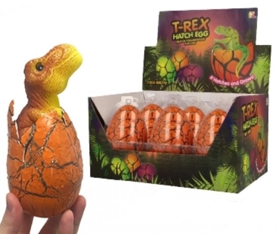 Dinozaurii au eclozat din ouă! Același lucru poți face și tu: pune oul într-un castron cu apă și vezi cum dinozaurul T-Rex eclozează în 72 de ore, ajungând la o înălțime de 16 cm.