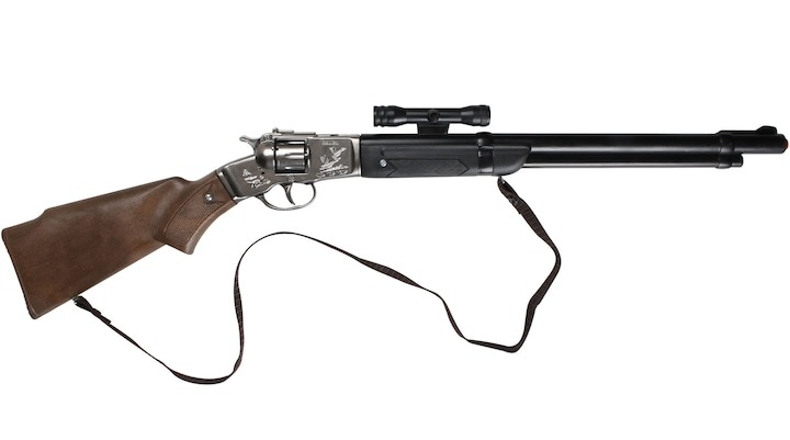 Jucarie pusca Cowboy cu doua tevi si luneta. Acest model este o replica.