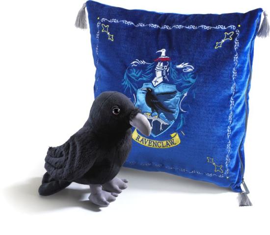 Cu o dimensiune de aproximativ 34 cm, această pernă brodată cu blazonul casei Ravenclaw, conține mascota relevantă a casei, măsurând aproximativ 25 cm.