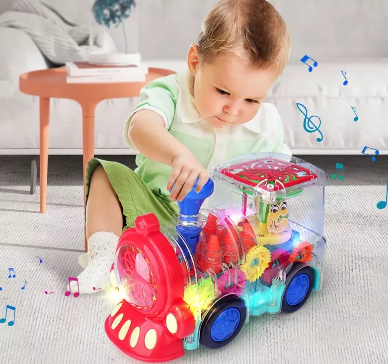 Este una dintre cele mai bune jucarii educationale timpurii. Corpul trenului are un design transparent, unic, iar pe masura ce trenuletul se deplaseaza, copiii pot vedea clar rotitele interioare care se invartesc si se pun in miscare una pe cealalta, ajutandu-i sa observe si sa inteleaga conceptele mecanice si sa isi dezvolte imaginatia, abilitatile cognitive si abilitatile motorii.
