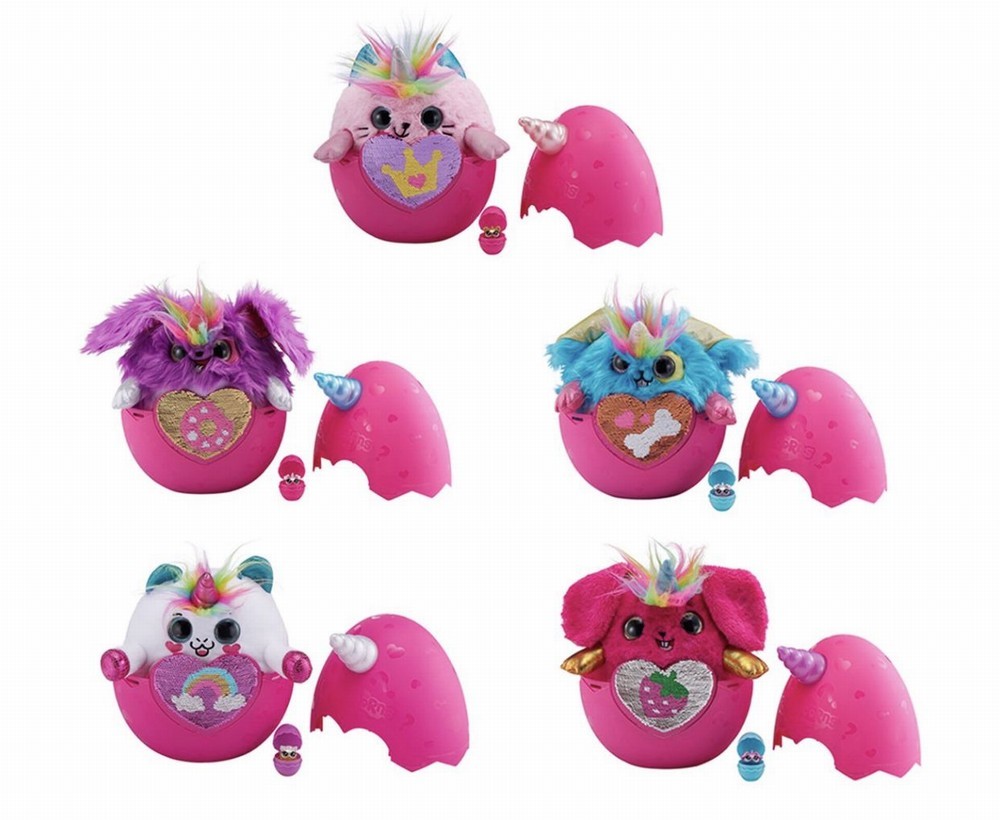 Fiecare ou contine un Unicorn curcubeu pufos, o inima detasabila si o figurina surpriza de colectionat. Cornul stralucitor si aripile ca de fluture aduc si mai multa magie fiecarui personaj. Poti gasi personajele rare?