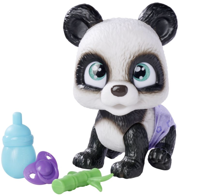 La fel ca toti bebelusii de animale Pamper Petz, figura panda de aproximativ 15 cm inaltime cu ochi mari stralucitori poate bea apa reala si poate face pipi.
