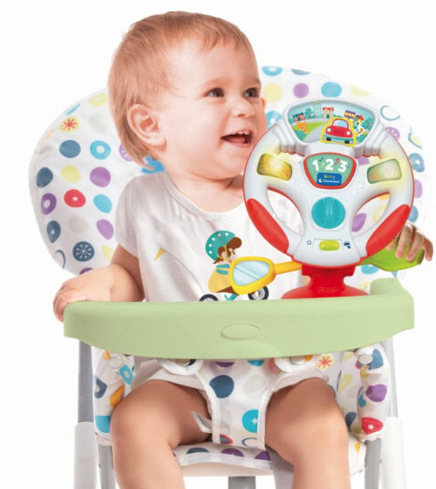 Cheia activeaza 2 moduri de joc: motor pornit sau oprit. Oglinjoara si levierul de viteza se misca in timp ce activitatile mecanice ajuta copilul sa-si dezvolte abilitatile manuale. Volanul are un sistem practic de prindere cu ventuza pentru fixare usoara. O lume care trebuie descoperita Timpul petrecut la joaca este esential pentru dezvoltarea celui mic.