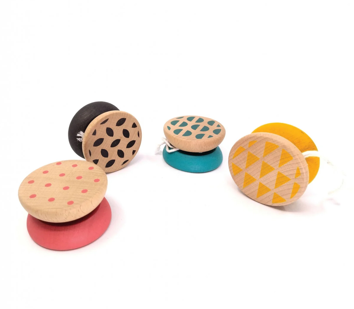 Yo-Yo din lemn de fag, cu culori vibrante și modele geometrice, pentru trucuri impresionante. Pentru ore nesfârșite de distracție, joacă un rol semnificativ pentru dezvoltarea abilităților de motricitate fină și de coordonare mână-ochi.