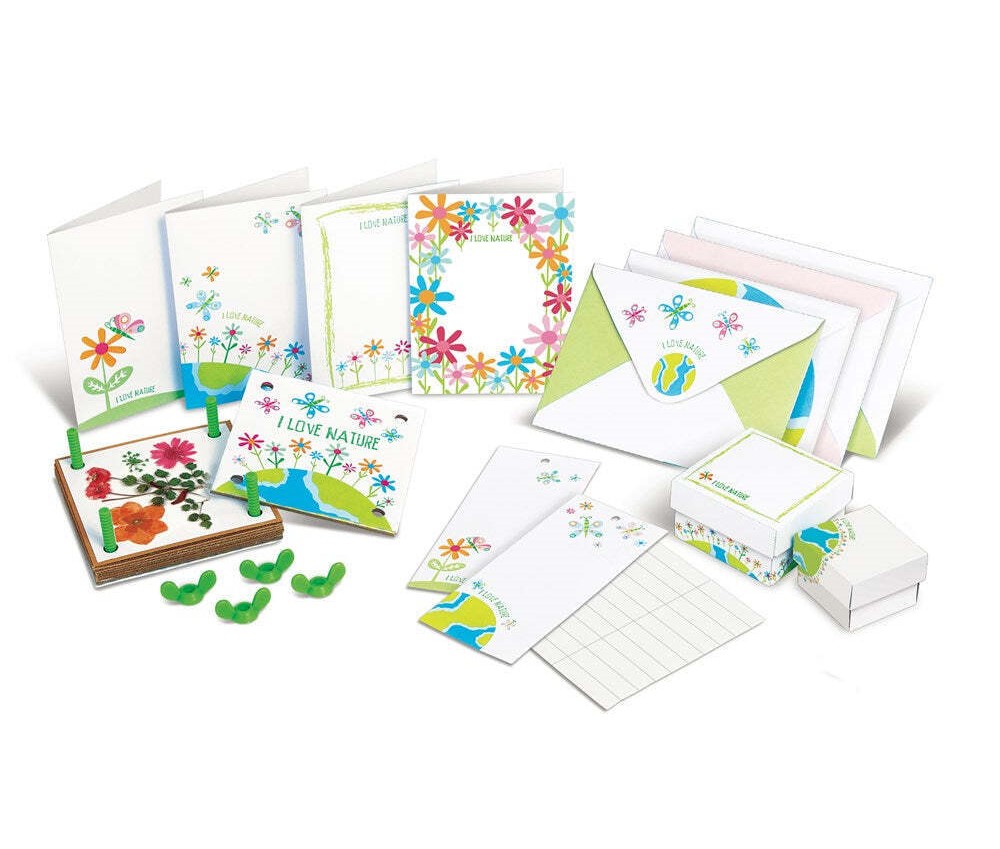 Reciclează florile și frunzele căzute! Fructifică frumusețea naturii în propria ta casă realizând obiecte cu flori presate. Kitul include materiale pentru realizarea de cutii, felicitări și semne de carte!
