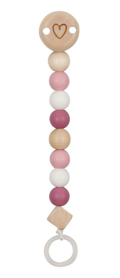 Jucărie din lemn - Lănțișor pentru suzetă - Inimioară